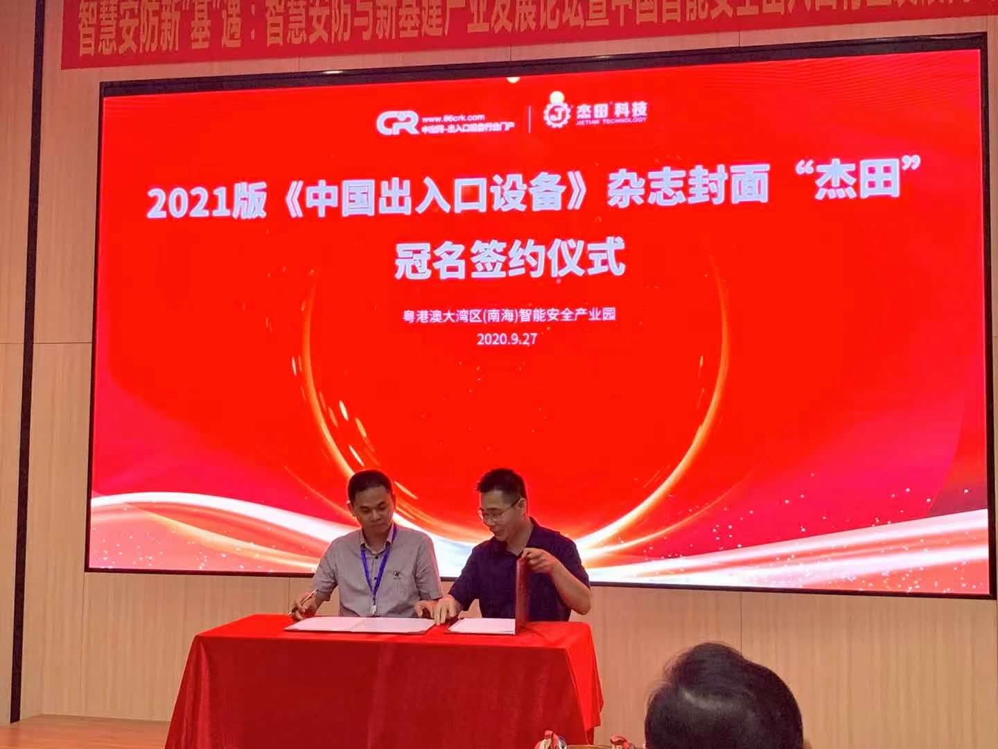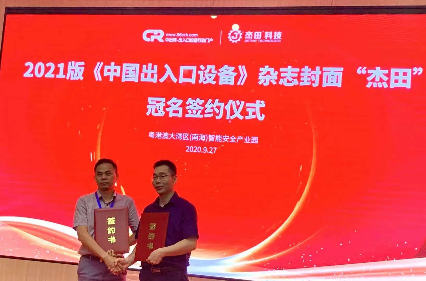 廈門杰田科技有限公司徐總與主辦方中出網&中國伸縮門網簽署2021年《中國出入口設備》雜志封面雜志冠名協(xié)議。