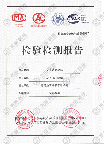 杰田液壓升降柱質(zhì)檢報告 擁有超強抗撞擊力!